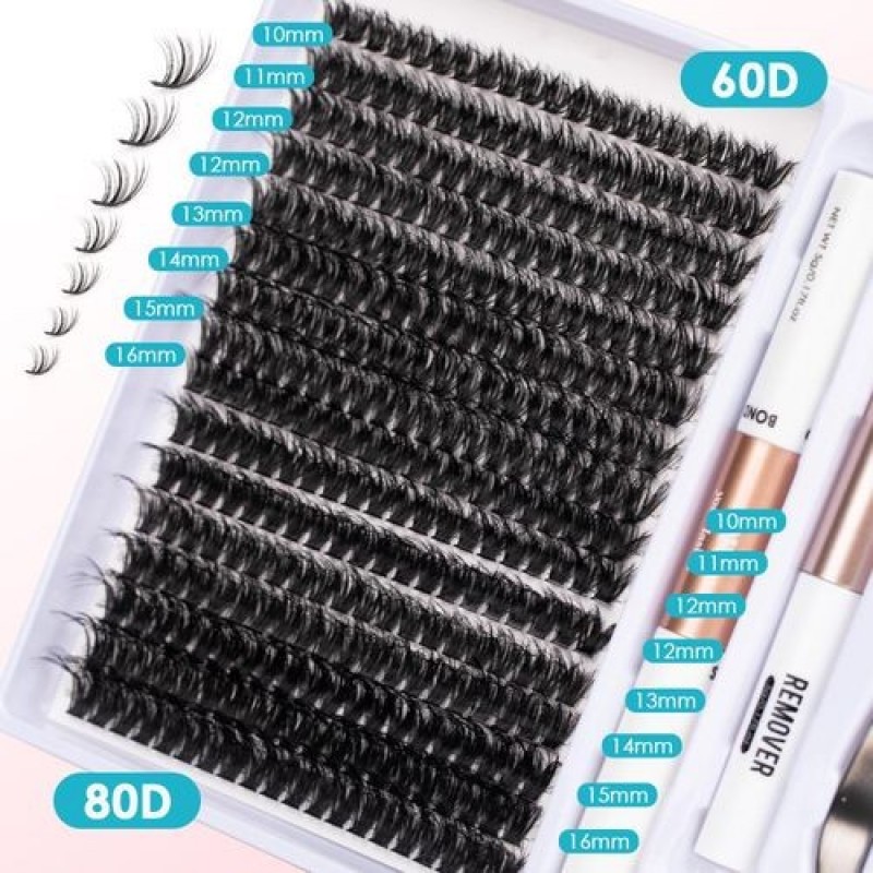 Набір для нарощування густих вій, 320 шт., пухнасті кластери вій 60D+80D, 10-16 мм, набір для нарощу